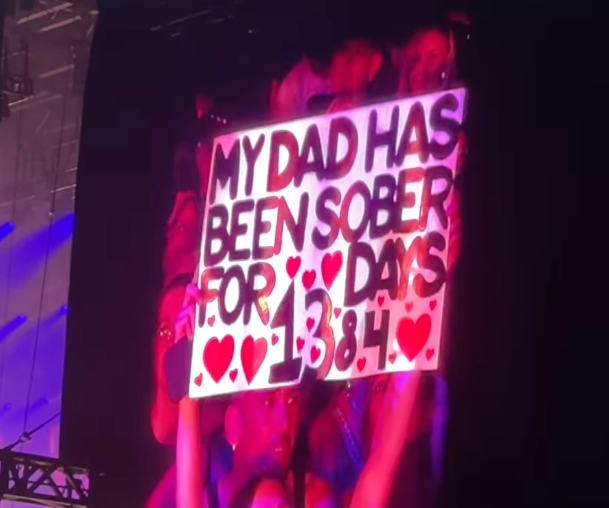 “I don’t have a song about anybody being 1,384 days sober,” he said, “but I wrote a song about experiencing that very first day sober. And I wanna sing that for you tonight so we can celebrate you — all 30,000 of us!”